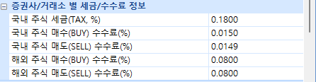 5.1. 국내 주식, 해외주식 수수료율 및 세금 비율 설정¶