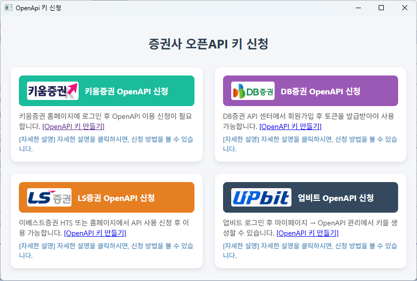 4. 각 증권사/거래소별 OPEN-API 키 발급 방법¶